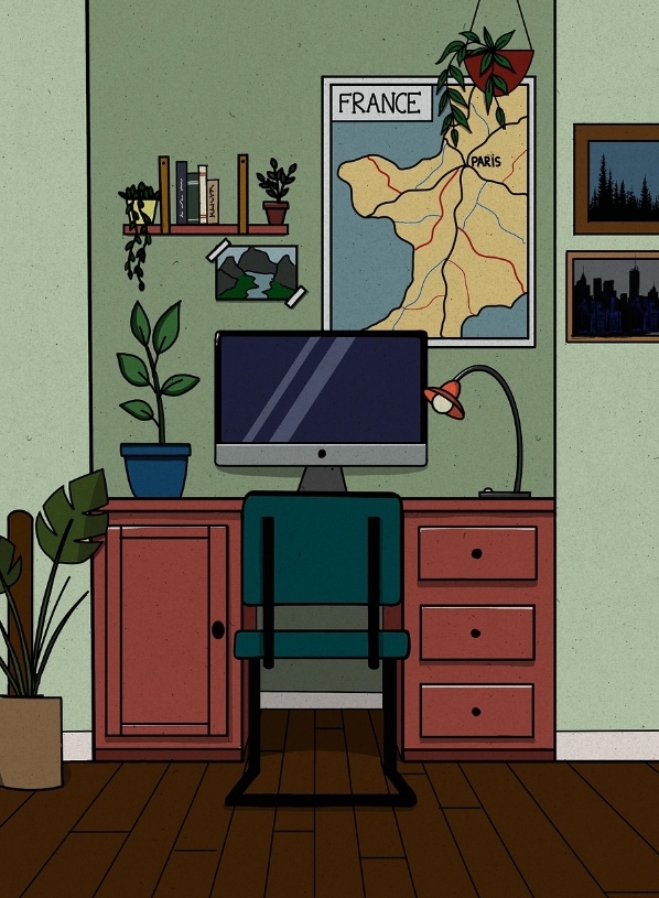 자연광이 들어오는 곳에 책상을 배치하는 것이 가장 이상적입니다. 자연광은 눈에 부담이 덜 가고, 기분도 좋게 만듭니다.